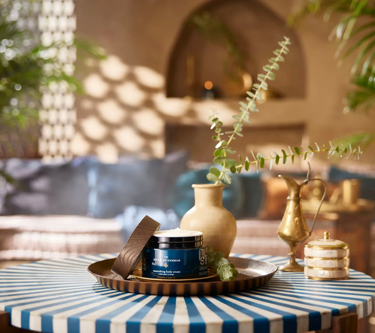 Revitalize e hidrate sua pele com o creme corporal nutritivo do The Ritual of Hammam. Infundido com eucalipto refrescante e óleo de argan rico em anti-oxidante, este creme de mimos transporta você para um autêntico banho de vapor, tudo no conforto da sua própria casa.